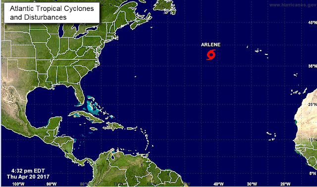 20Abr2017: Formou-se a oeste dos Açores a tempestade tropical Arlene esta tarde